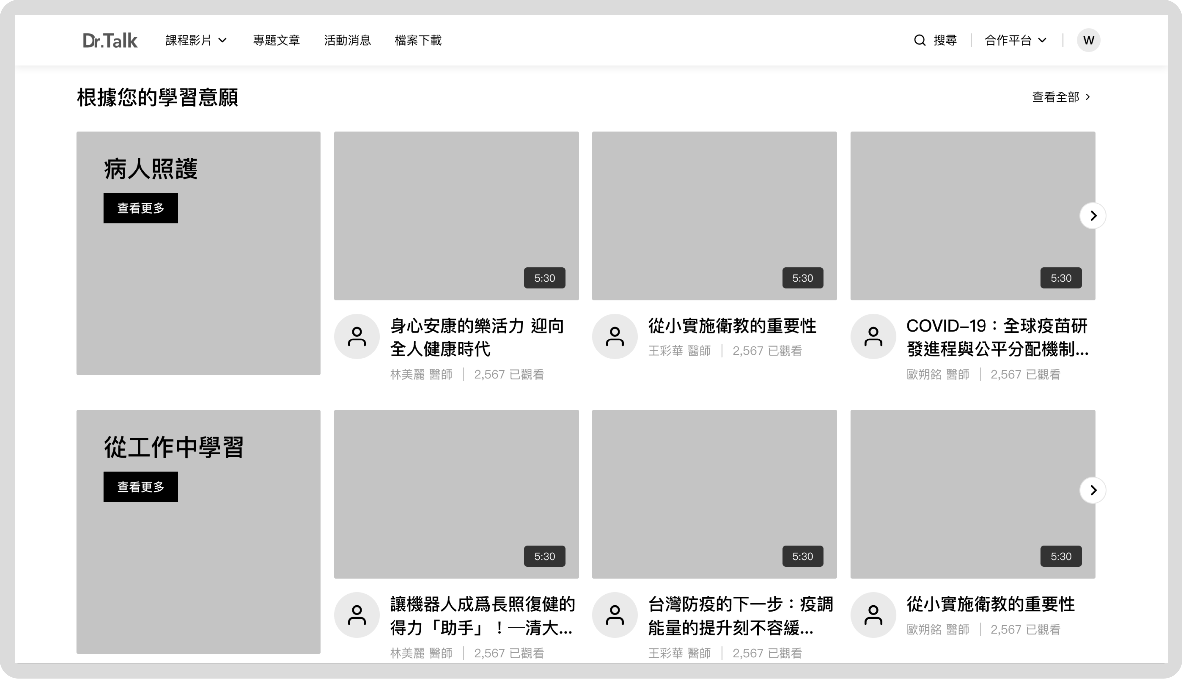 Provide corresponding content according to different roles and situations, and narrow the distance of medical content through design to create an online learning platform that can be easily explored.